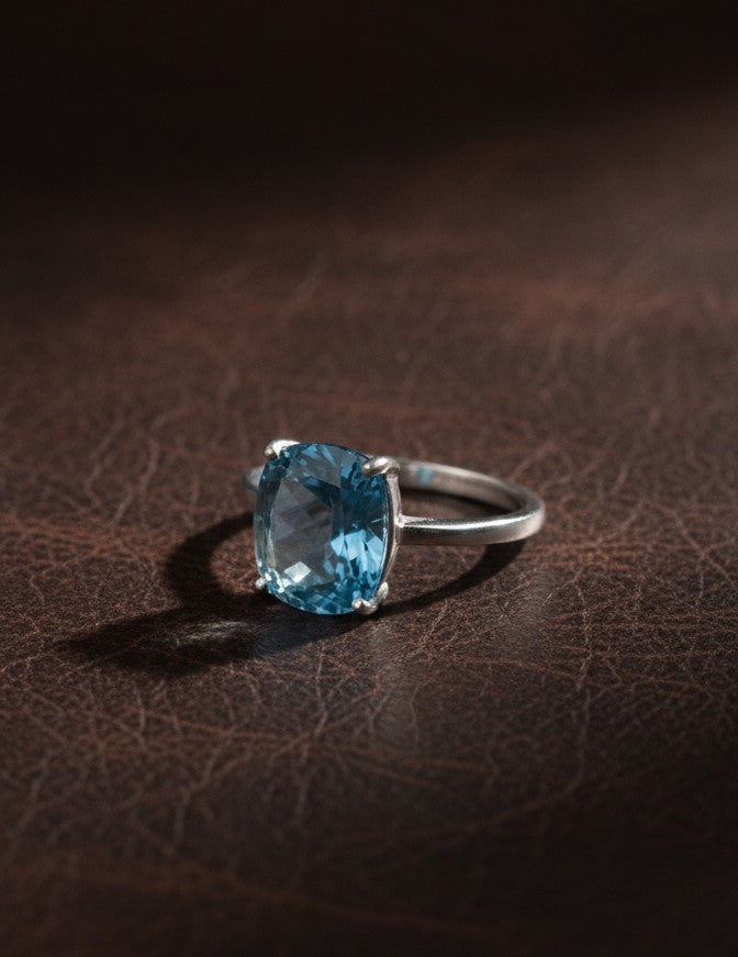 Immerse yourself in the rich, saturated color of this stunning Natural Blue Topaz Ring. Featuring a substantial, cushion-cut gemstone that rivals the deep blue of the open ocean, this solitaire design lets the stone do all the talking. Set simply in bright sterling silver, this ring offers a clean, bold statement that feels both timeless and wonderfully versatile. It’s an elegant choice for everyday luxury or as a meaningful promise ring.